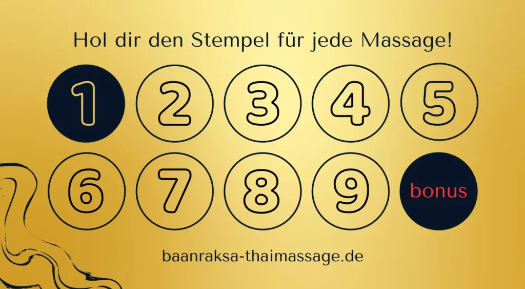 Mit der Sammelkarte 9+1 genießen Sie das ganze Jahr über regelmäßig Massagen und erhalten die 10. Massage gratis.